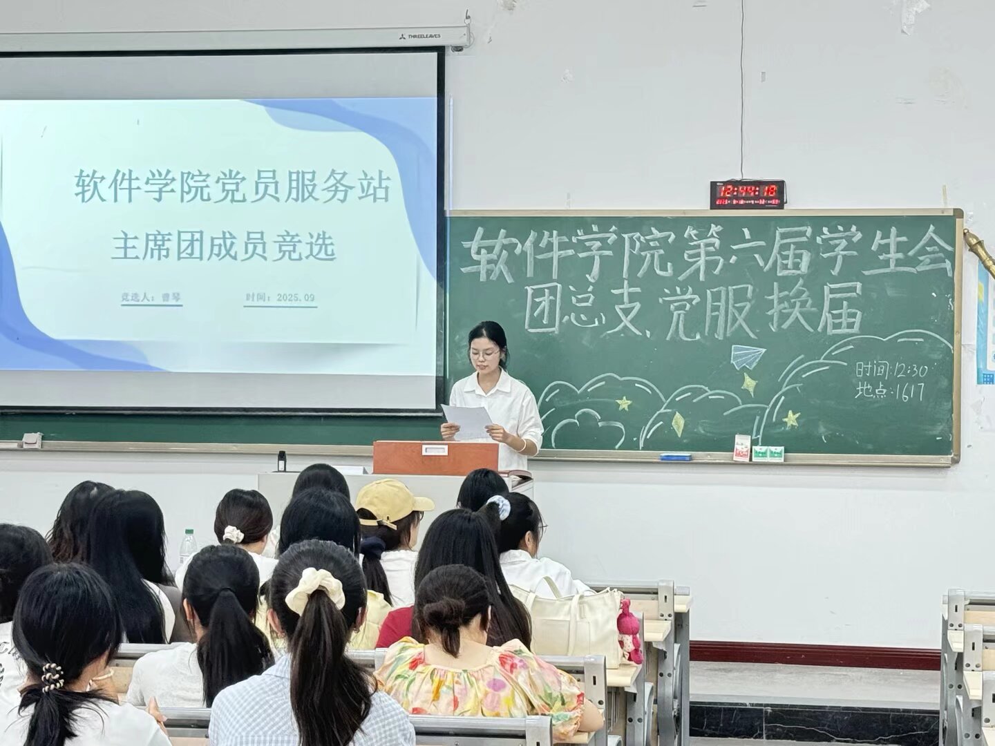 为确保党员服务站工作的持续推进与创新发展,2025年9月18日中午12:30,软件学院党员服务站先后在1617 教室与1619 教室举行第五届党员服务站换届大会。大会始终以公开、公平、公正为工作准则,严格遵循现场述职、民主投票、综合评定流程,最终确定了新一届主席团成员及各部门负责人人选,现将结果公示如下:
