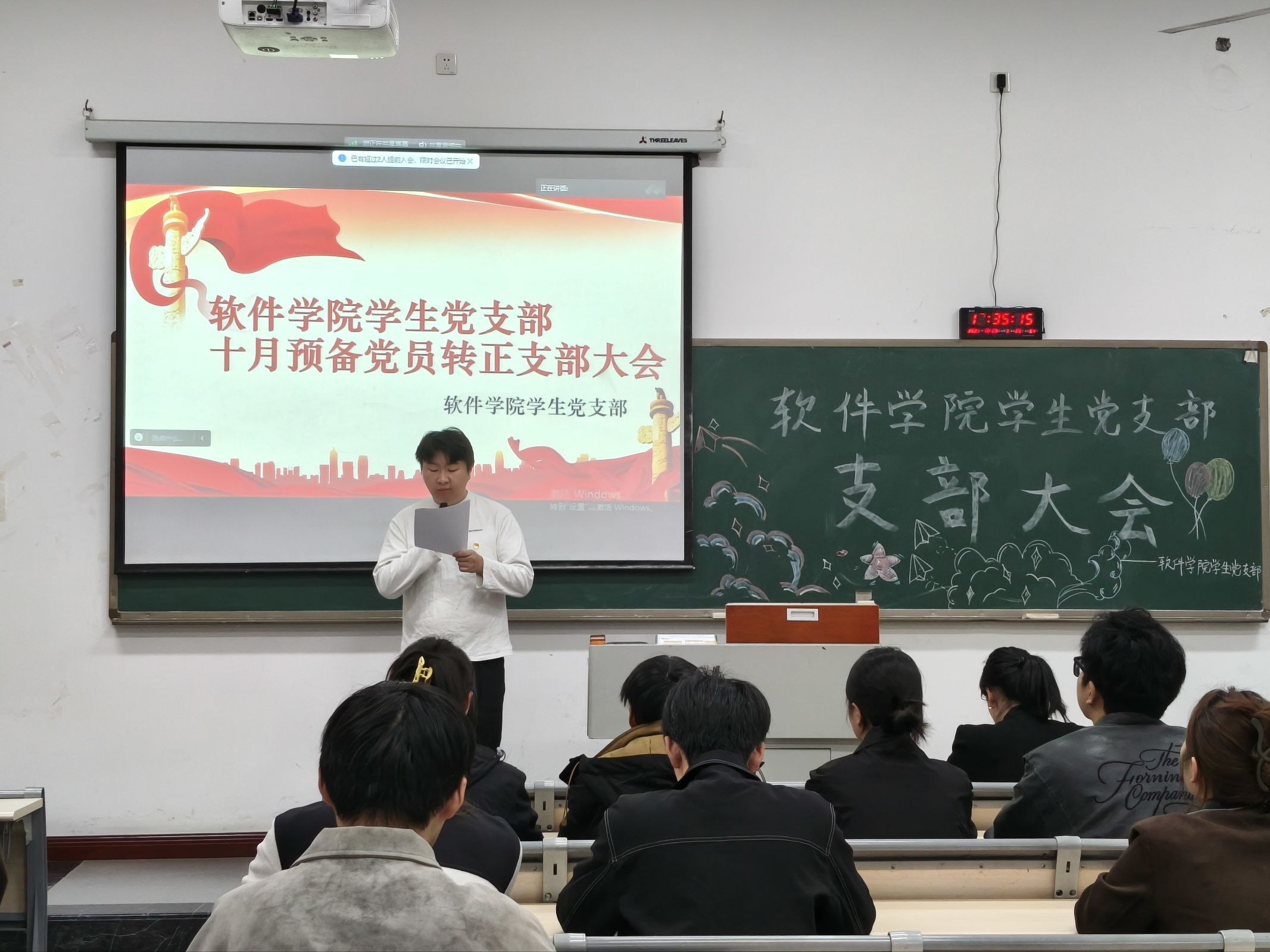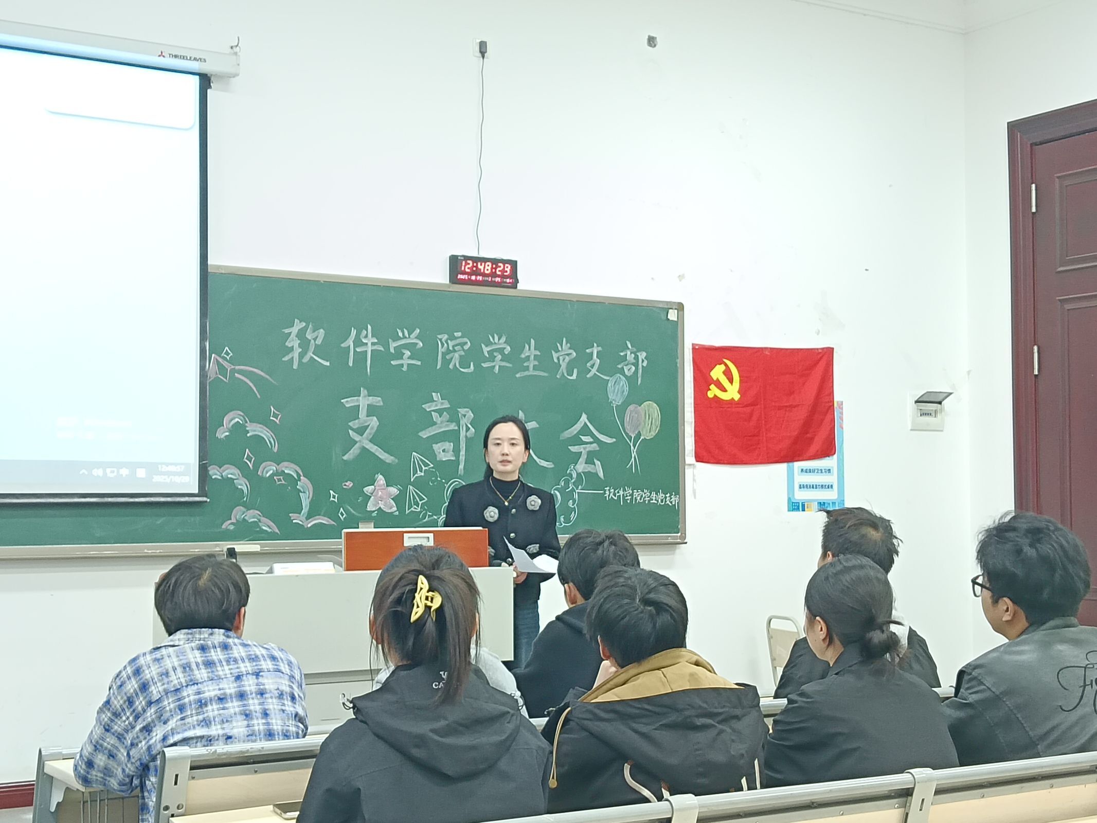 为加强党员队伍建设,培养更多优秀党员力量,10月29日,软件学院学生党支部在教室1606召开十月支部大会。会议由李阳东同志主持,软件学院学生党支部书记邵亚茹老师、全体党员入党介绍人,党小组会成员及群众代表参会。