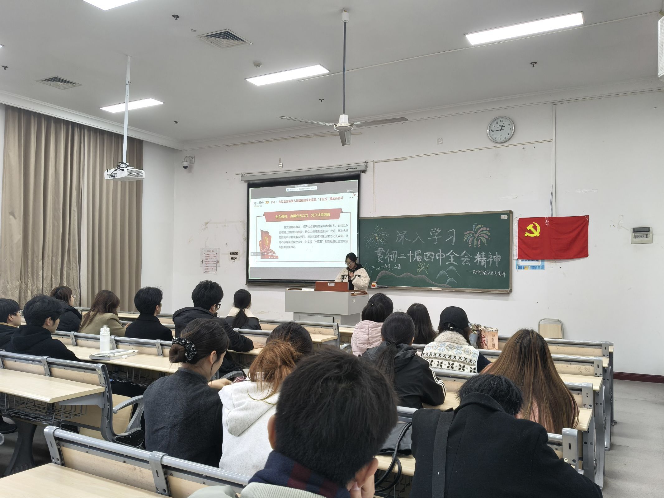 为深入学习第二十届四中全会精神,领会核心要义、践行实干要求,11月20日,软件学院学生党支部在教室1501开展深入学习贯彻二十届四中全会精神专题党课。谭洋洋同志主持会议,我院全体学生党员参会,一同学习全会青年工作重要论述,立足学业岗位谋划实干举措。