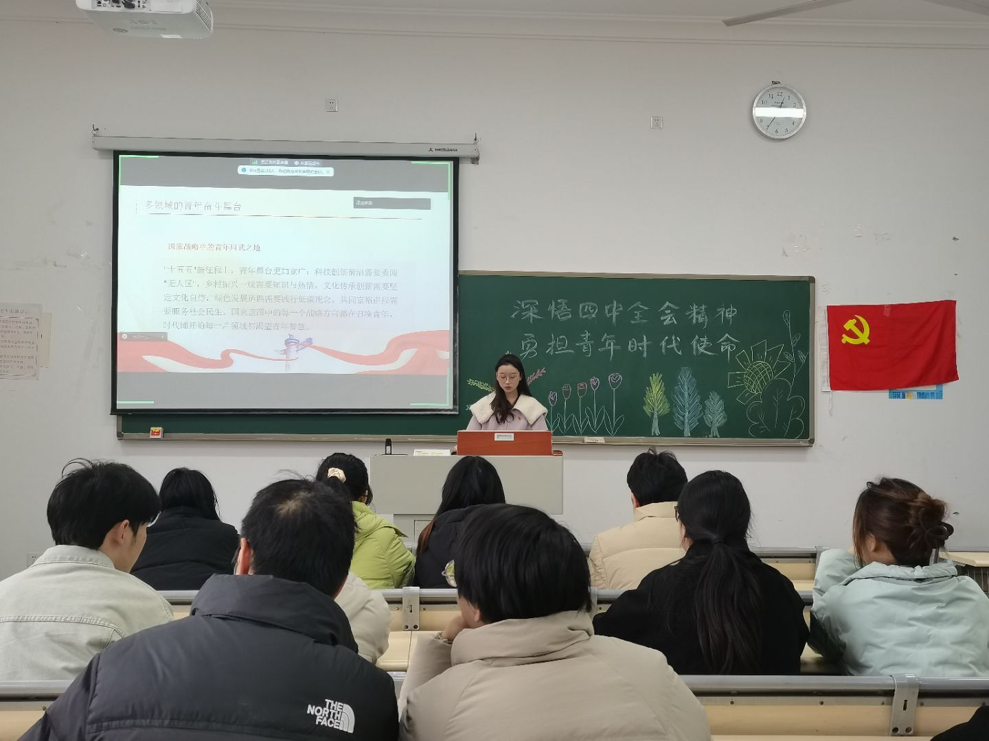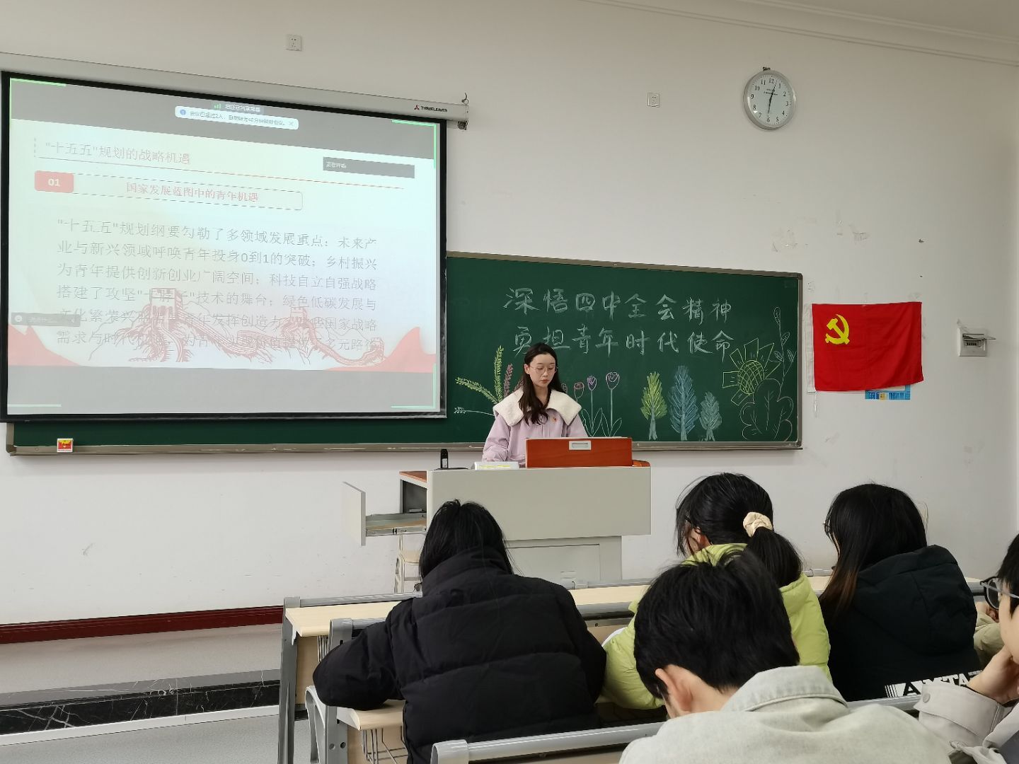 会末,主持人通过图文影像,回顾了“十四五”时期国家发展辉煌成就与青年奋斗风采,点明时代答卷离不开青春担当。随之聚焦于“十五五”规划为青年开辟的新赛道,引导与会党员将专业所学对接国家需求,把规划要求转化为砥砺前行的行动自觉。
