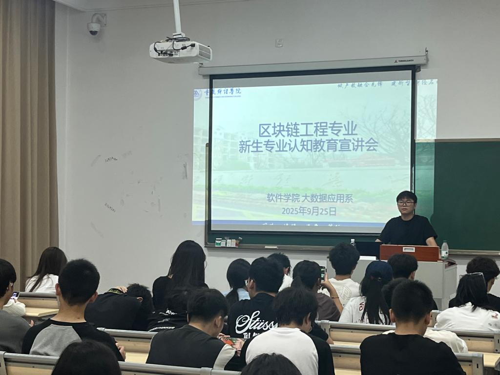为促进2025级大数据应用系新生更好地了解所学专业,明确学习方向与职业规划,重庆财经学院软件学院分别于2025年9月25日,在教学楼1503、1505教室举行了2025级大数据应用系大数据管理与应用、区块链工程两个专业的新生专业认知教育大会。大数据应用系负责人、各专业负责人、企业专家以及全体2025级大数据应用系新生参加了大会。
