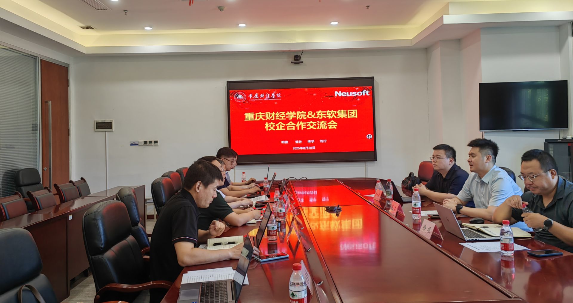 为贯彻落实我校产教融合工作要求,进一步夯实学校合格评估基石,2025年8月28日,重庆财经学院与东软集团股份有限公司在学校行政楼2303会议室举行校企合作研讨会。东软集团教育高等事业部总经理赵龙、西南区总经理姜天航,重庆区域负责人徐振、重庆财经学院副校长兼讯飞人工智能学院院长张立、软件学院院长、讯飞人工智能学院副院长及软件学院相关系主任参加了会议。