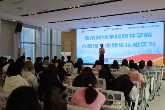 为深入贯彻践行学校“做产教融合先锋,建新型财经名校”办学理念,创新应用型人才培养模式,2025年11月5日上午,重庆财经学院软件学院组织大数据专业2025级90余名新生前往巴南软件园,开展了一场专业认知实习活动。此次活动旨在通过沉浸式行业体验,强化新生专业认同,明晰职业规划。大数据系主任左智科、副主任曲继鹏,专职辅导员何建旭参与活动。