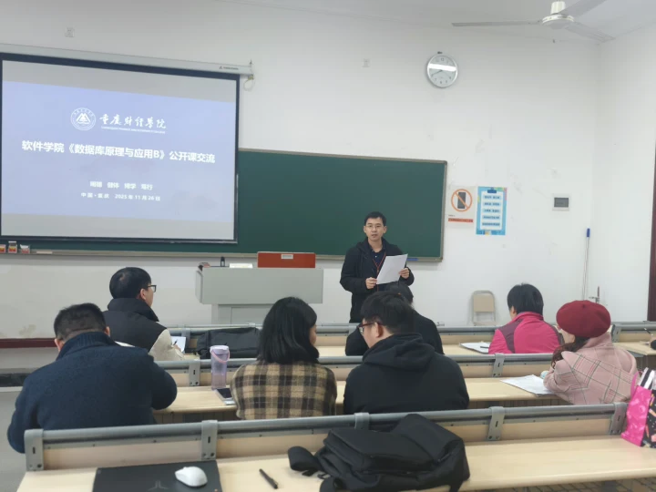 为进一步深化课堂教学改革,提升教师教学水平与课程质量,2025年11月26日,我校软件学院成功组织开展《数据库原理与应用B》教学观摩与研讨活动。本次公开课由杨武教授主讲,学院副院长夏祥礼、教学督导李梁、大数据系副主任曲继鹏、大数据管理与应用专业负责人何晓晔、区块链工程专业负责人刘念以及来自全校各院系的教师代表参加。