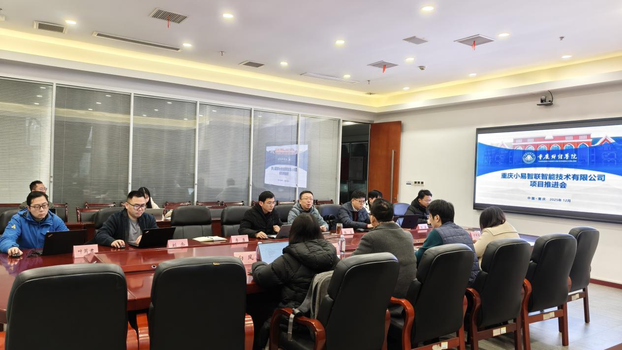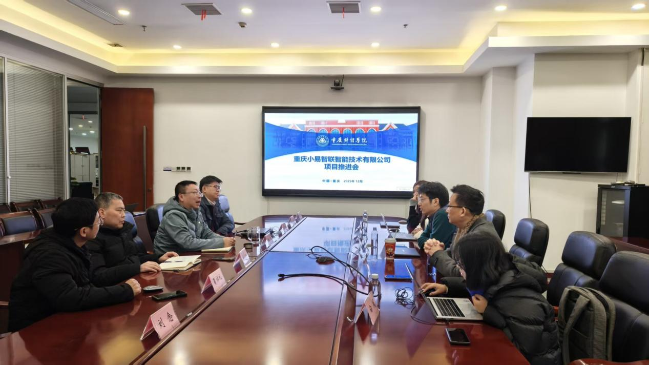 12月23日,重庆财经学院与重庆小易智联智能技术有限公司在2303会议室召开项目推进会,围绕双方在研的多个数字化项目进展、技术实现与校企协同机制展开深入交流,明确以真实业务订单驱动学生实训,深化产教融合。重庆财经学院副校长张立、软件学院副院长夏祥礼、人工智能学院副院长曹飞及各项目负责骨干教师代表,与重庆小易智联智能技术有限公司副总经理幸运、副总经理刘艳书、商业生态中心负责人孙大智、项目负责人向凤、公共商务副总监丁梦洁等共同出席。